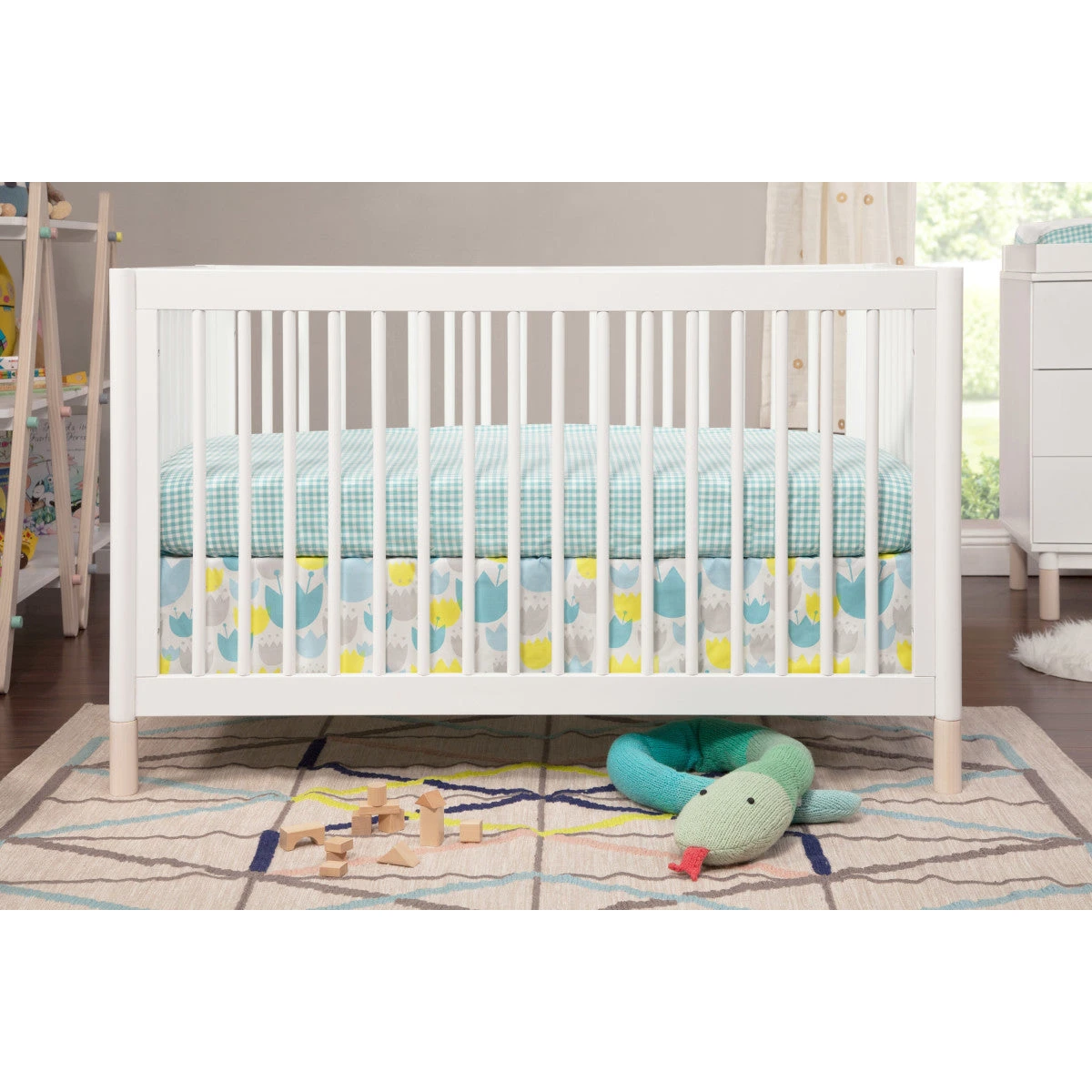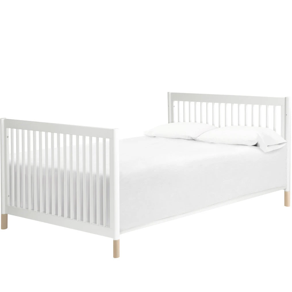 The Gelato 4-in-1 Convertible Crib brings playful practicality to your nursery. Rounded spindles make this crib simple yet a total statement piece while rounded posts ensure safety for wobbly toddlers.Â