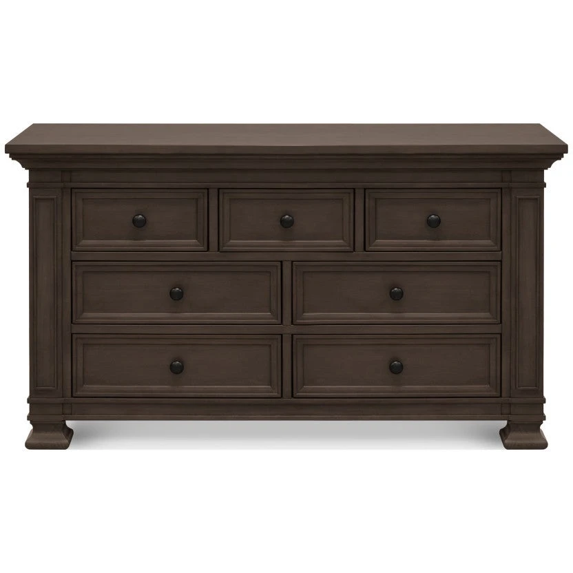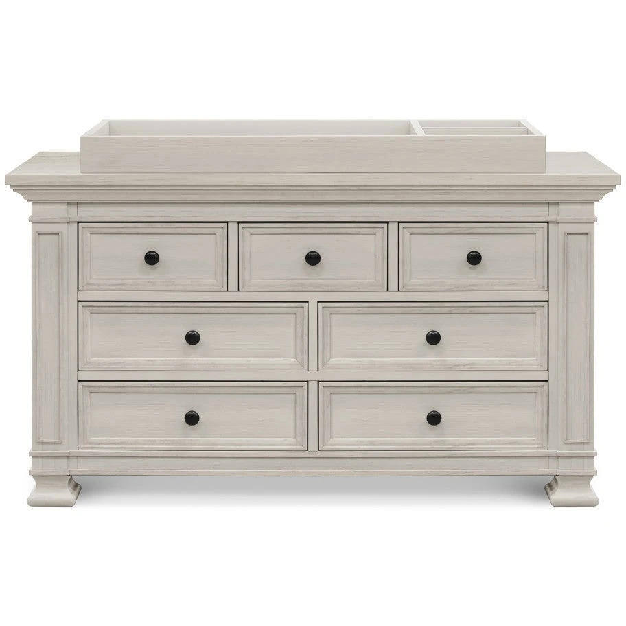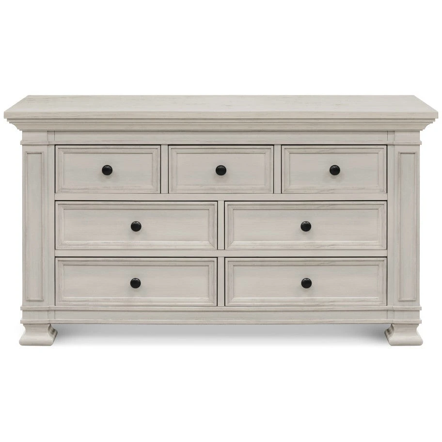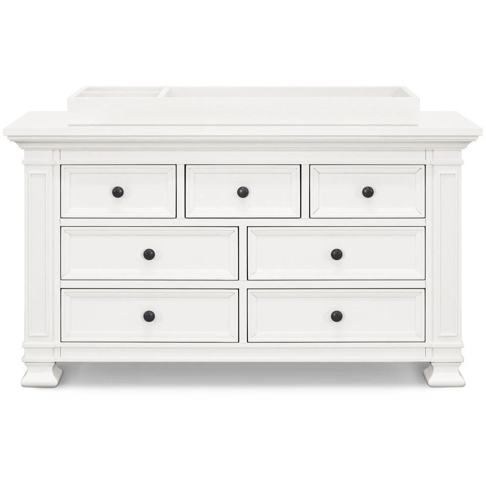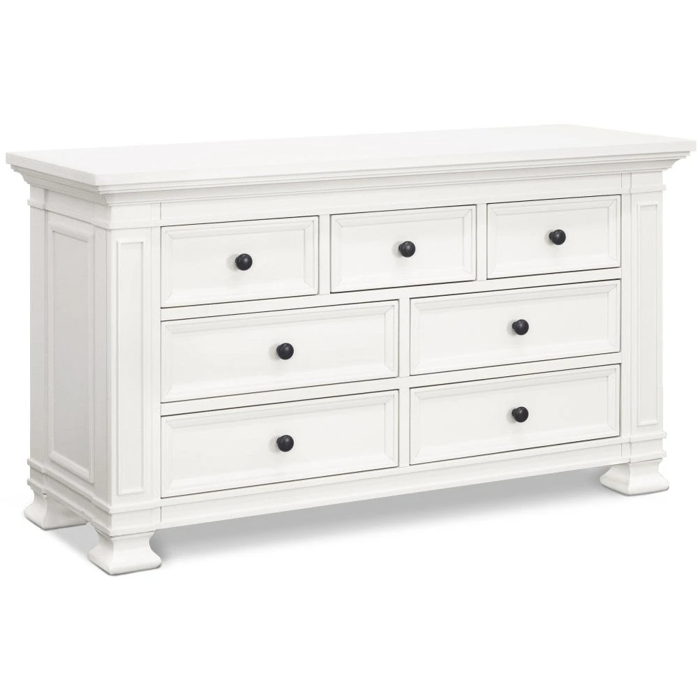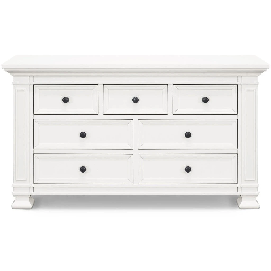 The Classic Double-Wide Dresser is designed to pair with the Tillen 4-in-1 Crib – mirroring its recessed details, molding, and luxurious footprint. Four spacious drawers on bottom provide ample storage space, while three top drawers provide added organization for baby’s necessities. With timeless details and solid construction, the majestic Classic dresser can transition beyond the baby years into any room in your home.