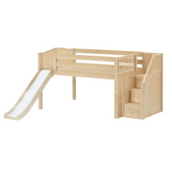 Sleep and study in style with the Fulham Loft Bed. Designed to save space, this bed makes it easy to fit a lounge or storage area underneath to create the ultimate versatile setup. The included desk comes with two drawers that are perfect for storing your schoolwork essentials. This bed’s wide, anti-slip staircase makes climbing up simple and easy. Crafted using solid, knot-free New Zealand pine wood, and strong metal-on-metal connections to provide strong support. A durable, non-toxic low VOC finish makes this the clean and healthy choice for your home. Safety and security come standard with 15†guard rails. Solid plywood slats and a metal support bar contribute to a high 400 lb. resting weight capacity per sleeping surface. The slatted headboard and flush, color-matched hardware create a modern look. Combining superior quality with classic design, this Loft with Staircase + Desk is the perfect all-in-one solution for every room.