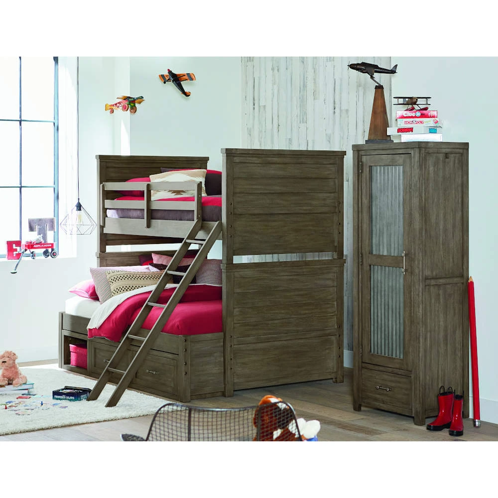 The Bunkhouse collection offers a rustic casual design that is on trend with today’s styles. Crafted with hardwoods and Acacia veneers in an Aged Barnwood finish with custom designed Galvanized finished pulls and corrugated metal accents.