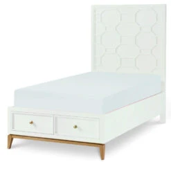 Rachael’s Chelsea youth collection is a glamorous, sophisticated grouping that brings her fashion-forward taste to any age. From storage to sleep to study, these modern, intriguing pieces will be loved from a young age to a college dorm room. The clean, transitional lines of the white finish are offset with gold accents and Soft Gold Finish Knob hardware, making each piece as warm and inviting as it is stylish.