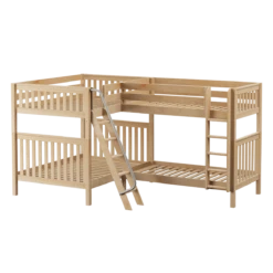 We connected a full size bunk + a twin bunk in an “L” shape to fit perfectly in a bedroom corner. This space-saving design sleeps 4 (or more!), making it the perfect solution for a shared bedroom or vacation home. Easy-to-climb, solid wood ladders on each end for dual access points. Patented Rock Lock system keeps stacked beds super sturdy and secure.