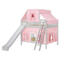 We added colorful fabrics + super fun slide to our full-size medium bunk bed so you can create the ultimate shared room or sleepover-headquarters.