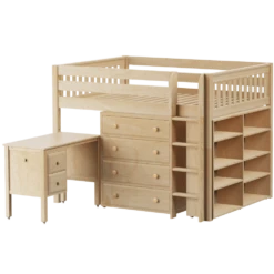 Our mid loft with straight ladder becomes the ultimate storage + study cube! Matching casegoods and desk designed to fit perfectly in the space beneath. Each piece is freestanding, so you can also use separately. Full size = extra room for growing kids, sleepovers or snuggling.