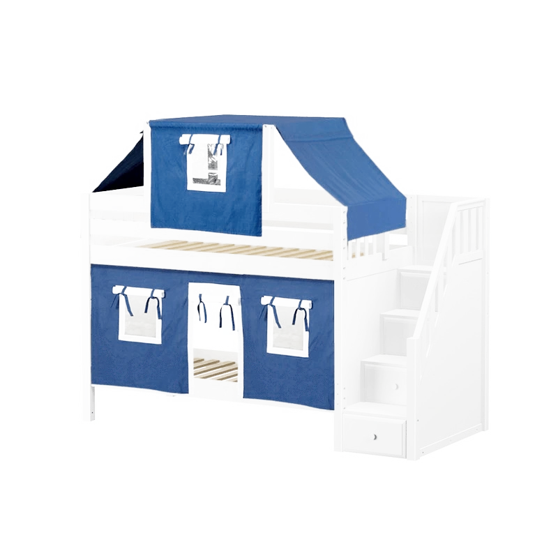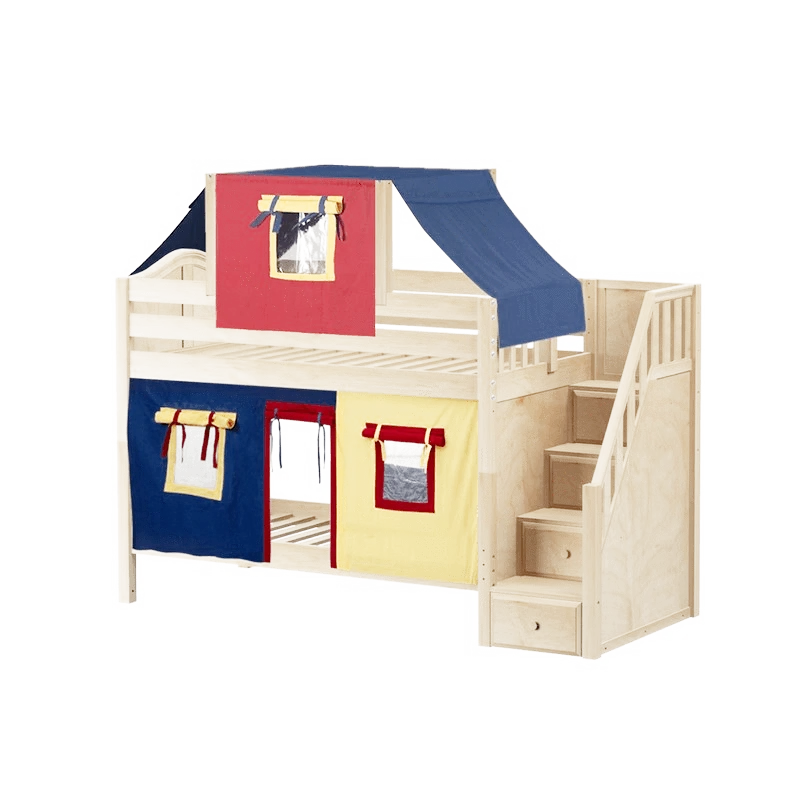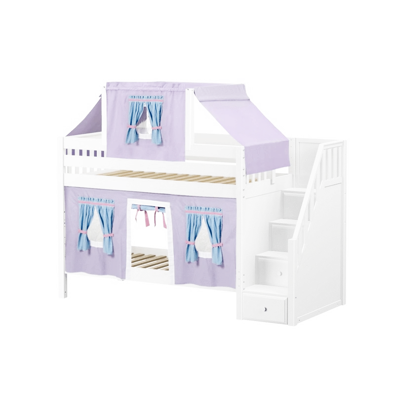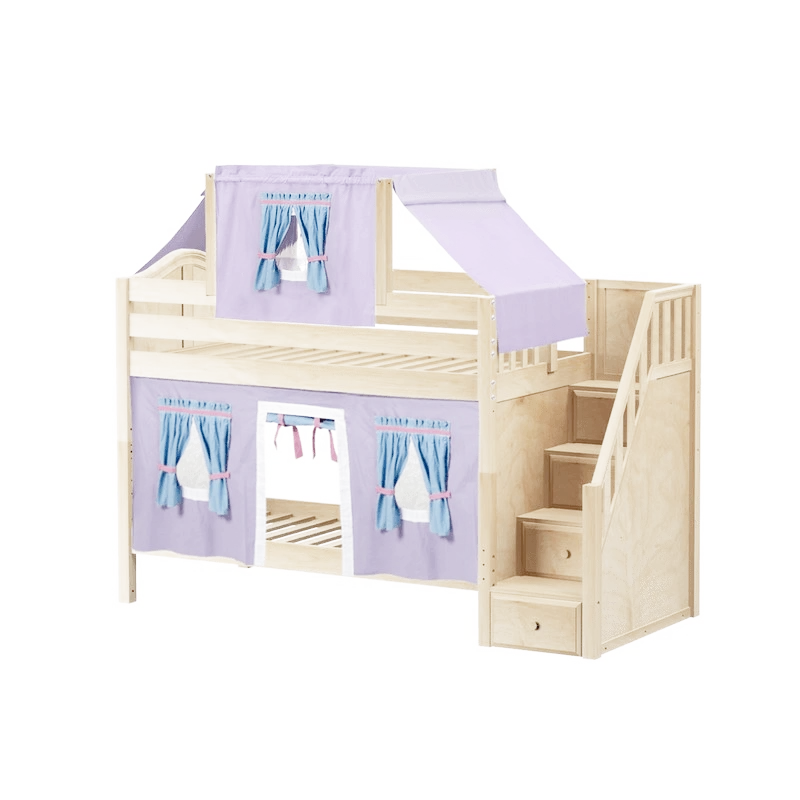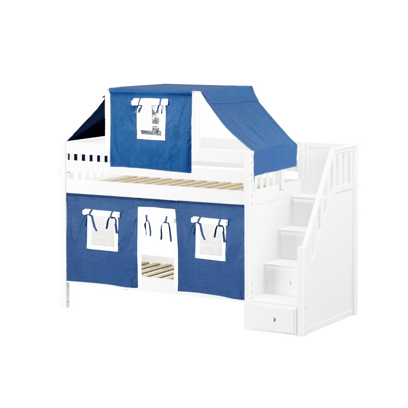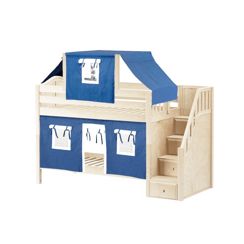 Maxtrix Twin Low Bunk Bed With Stairs, Curtain + Top Tent