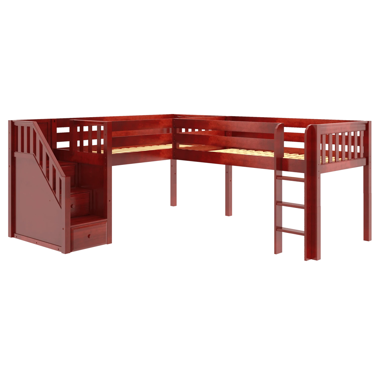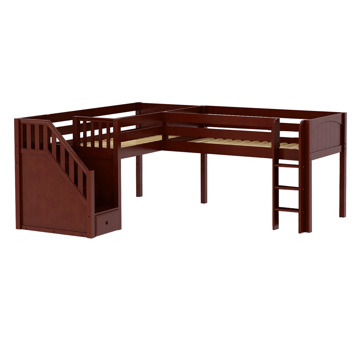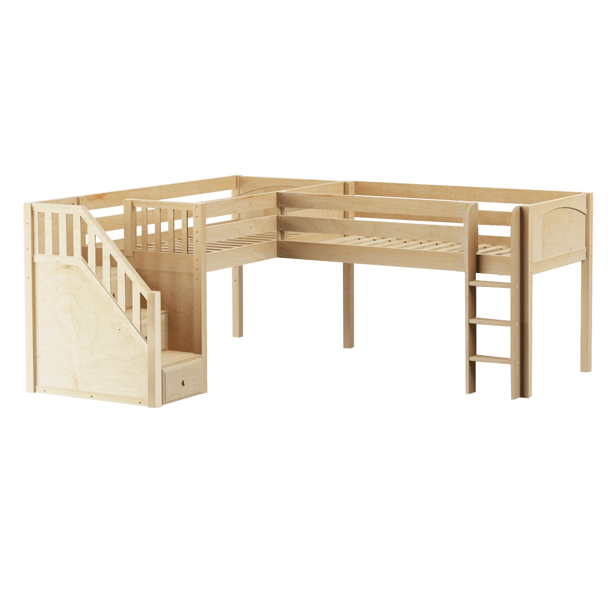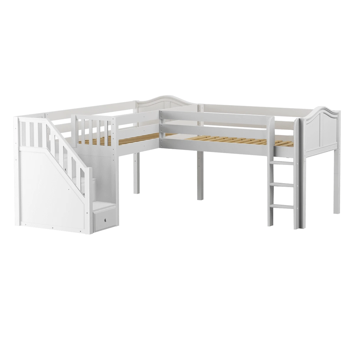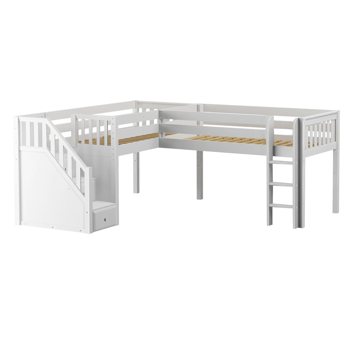 Maxtrix Twin Low Corner Loft Bed With Ladder + Stairs – L