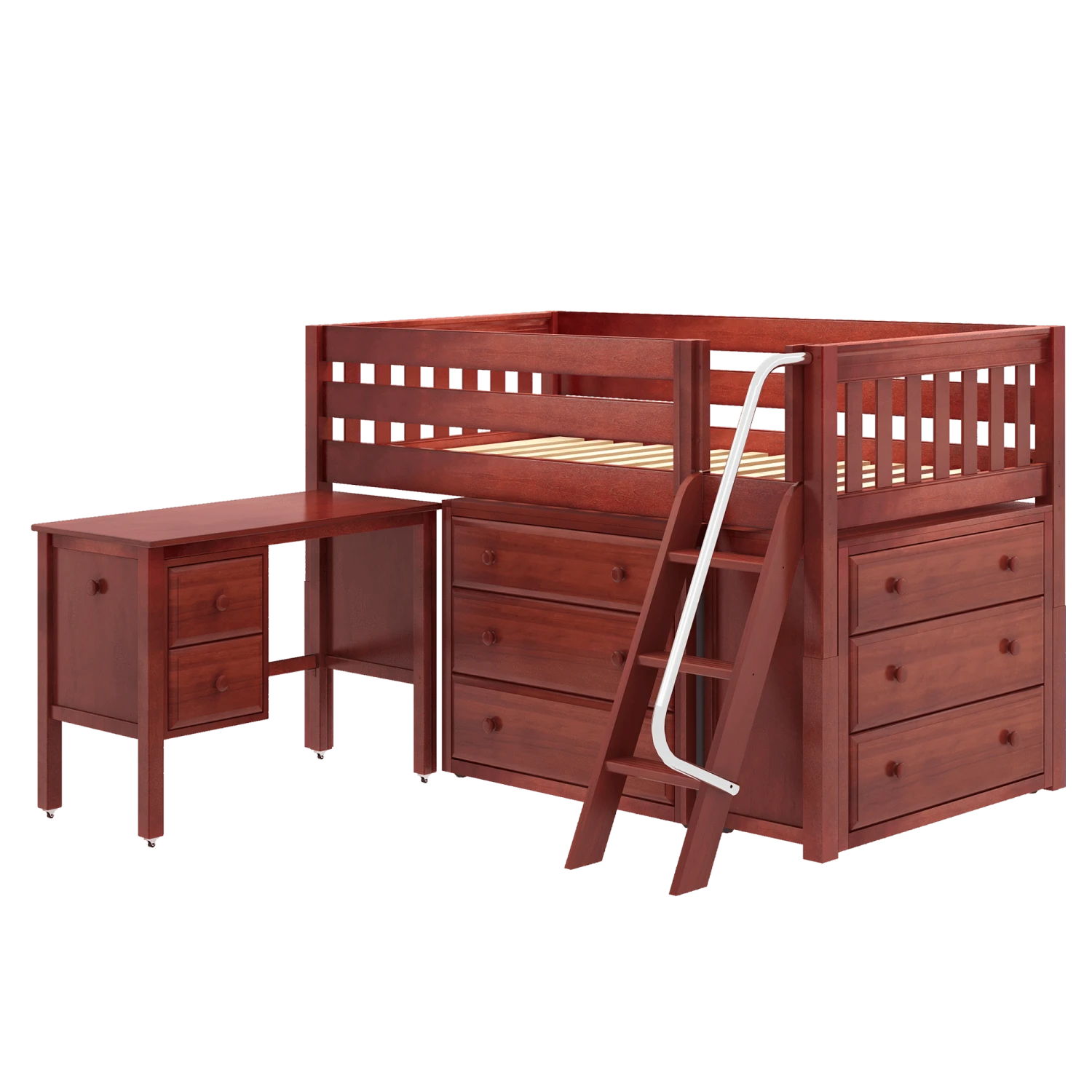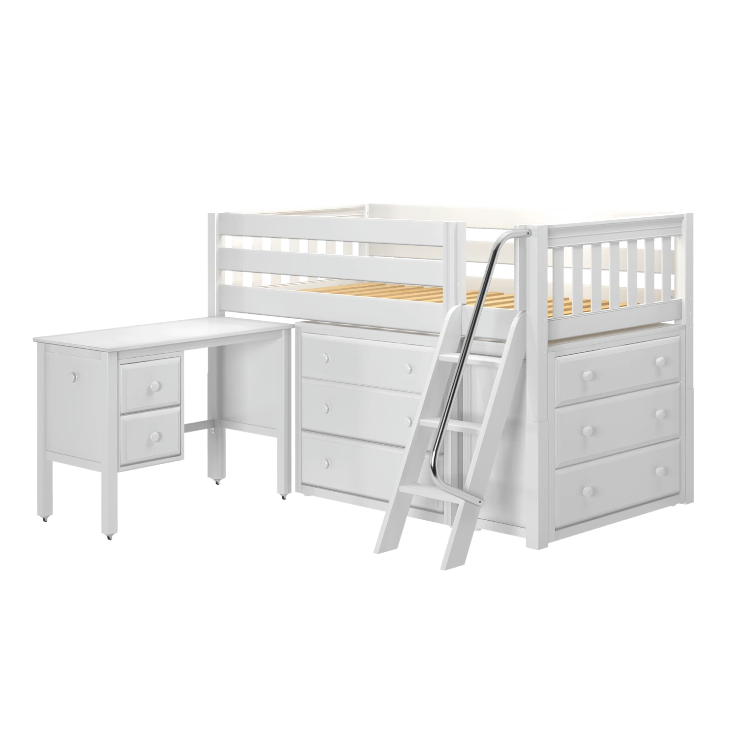 Maxtrix Twin Low Loft Bed With Angled Ladder, Storage + Desk