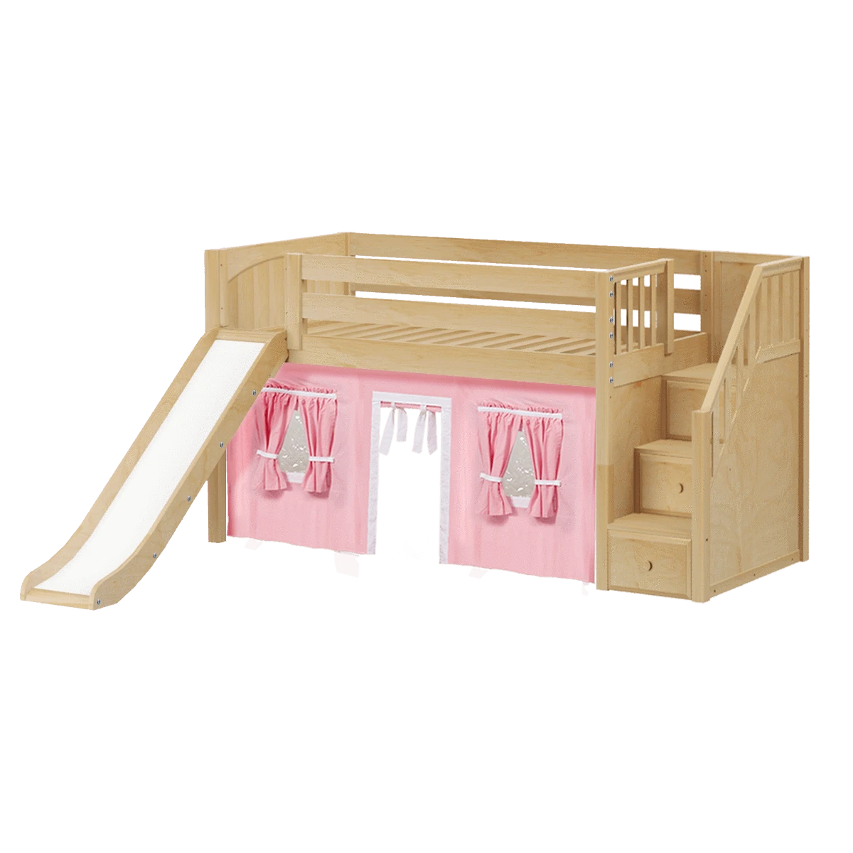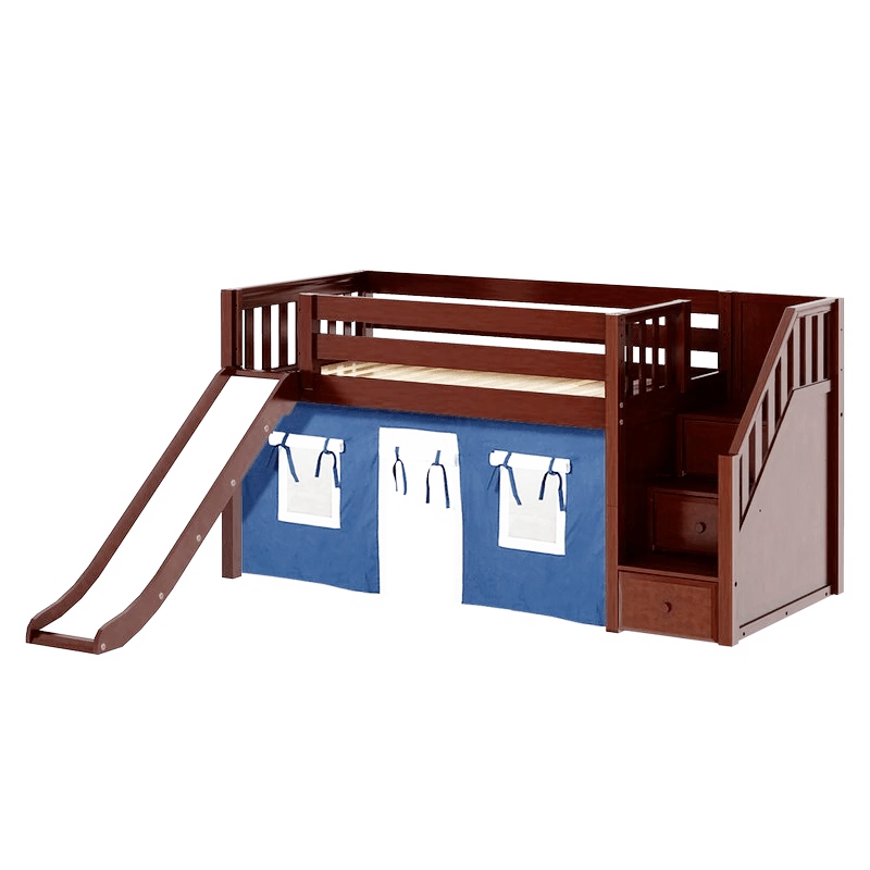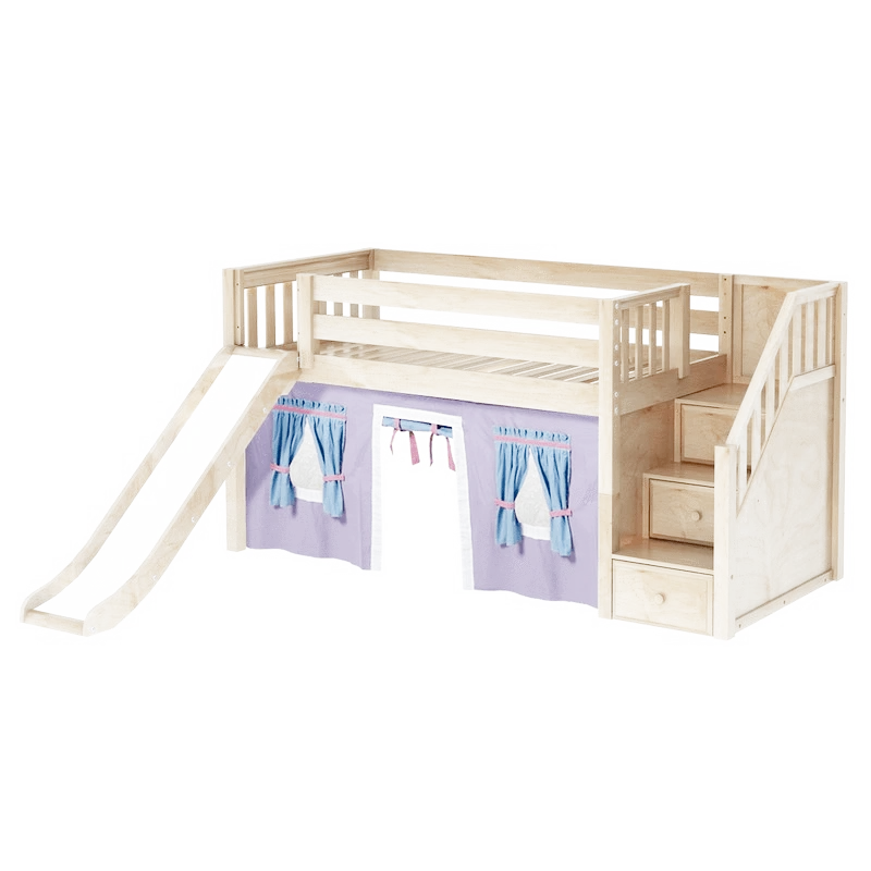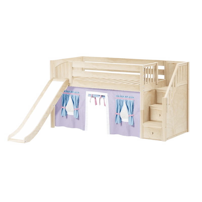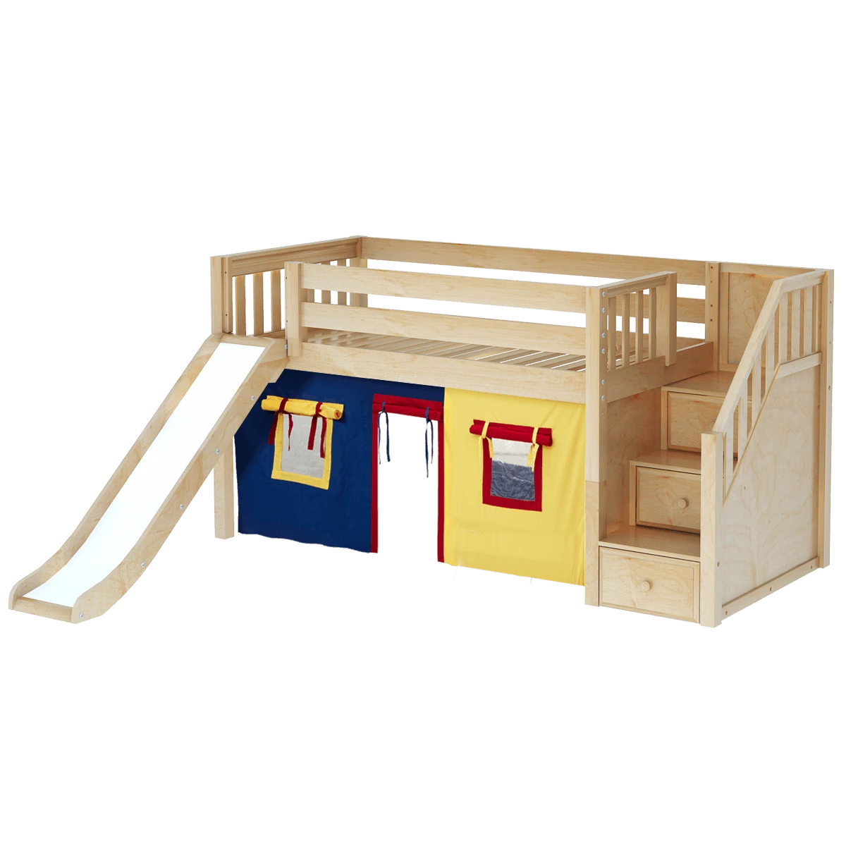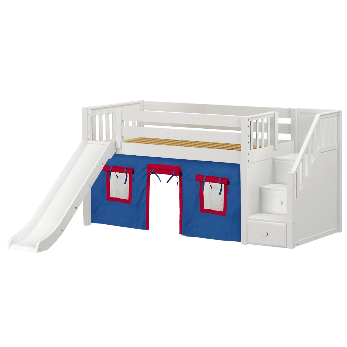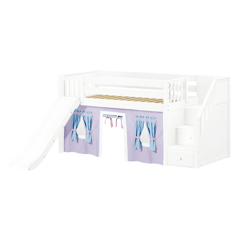 Maxtrix Twin Low Loft Bed With Stairs, Curtain + Slide