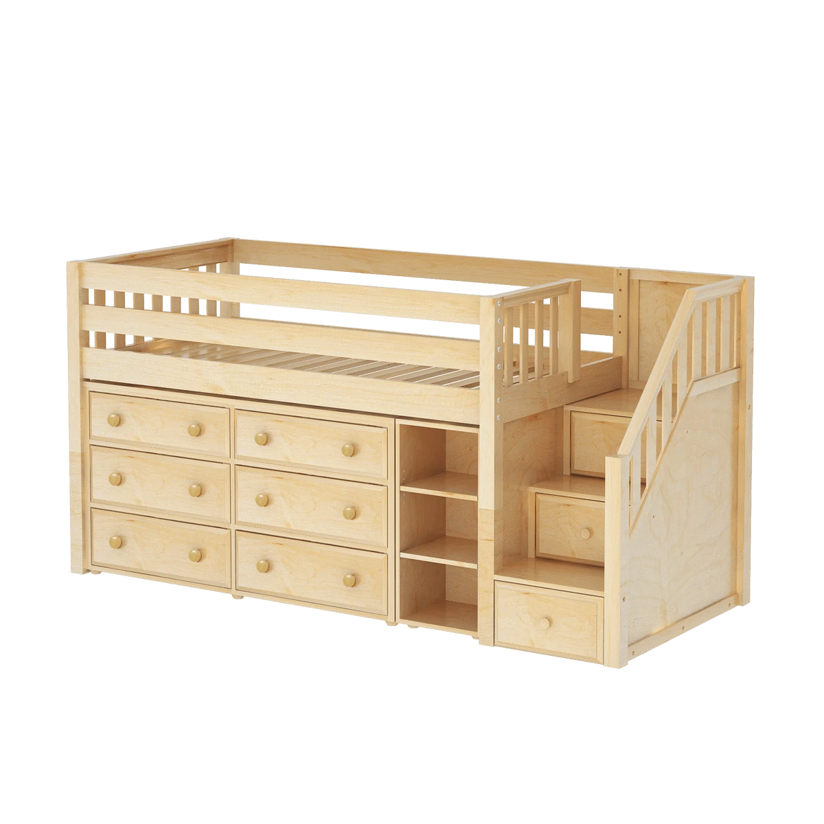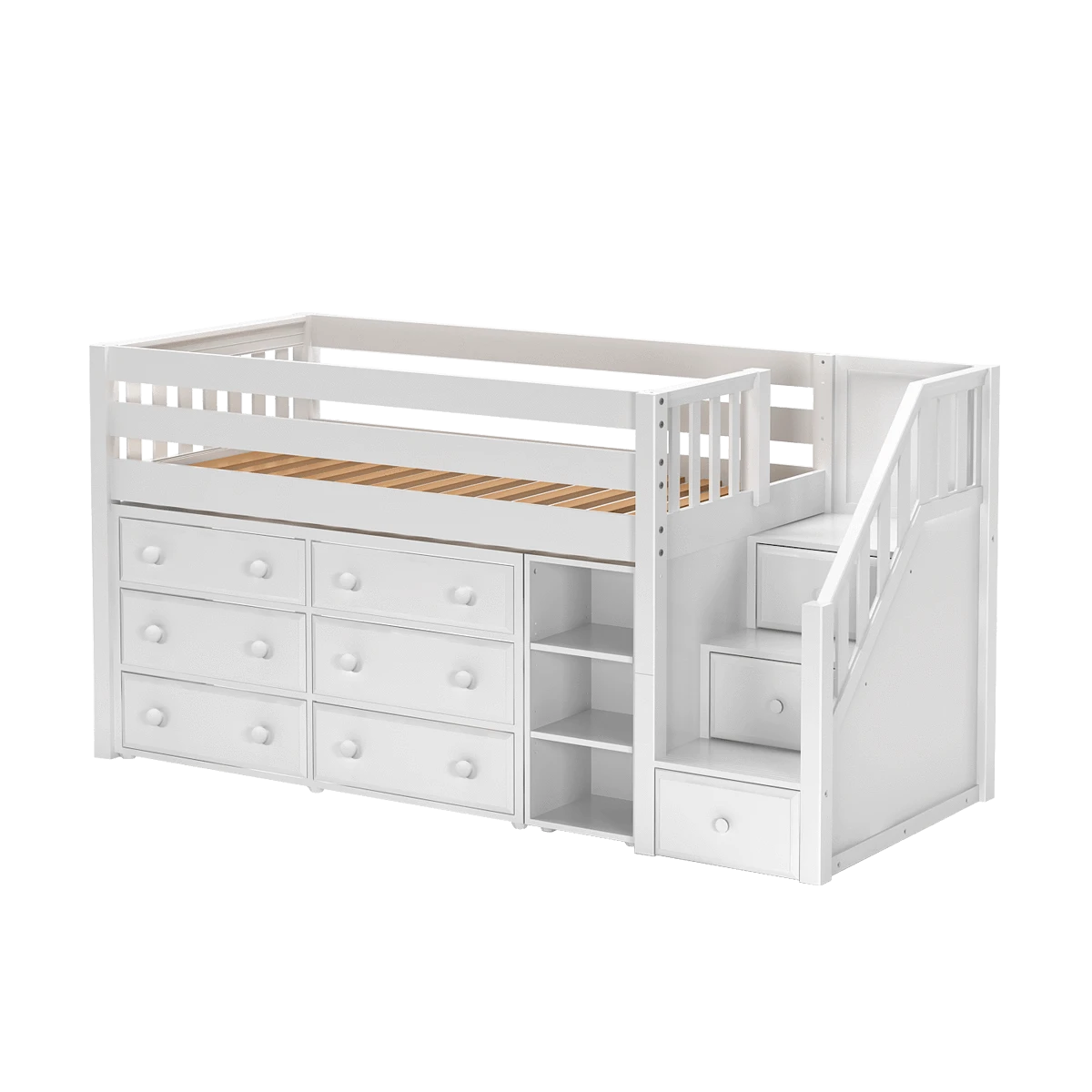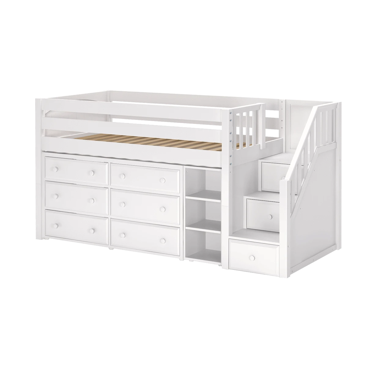 Maxtrix Twin Low Loft Bed With Stairs + Storage