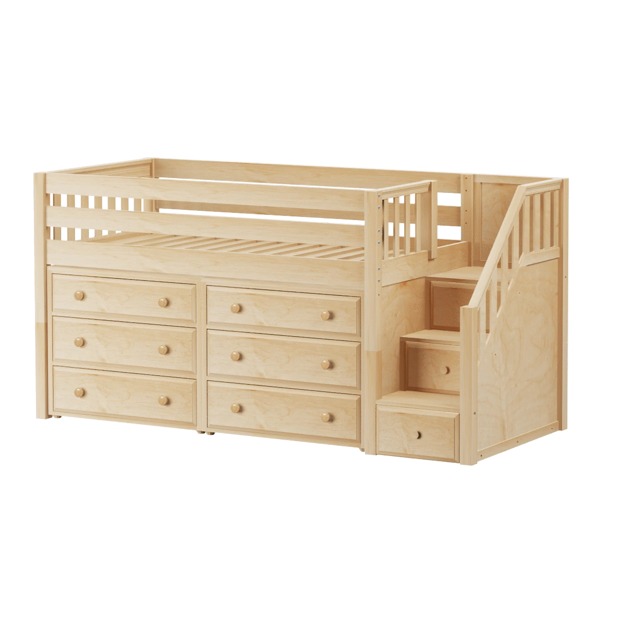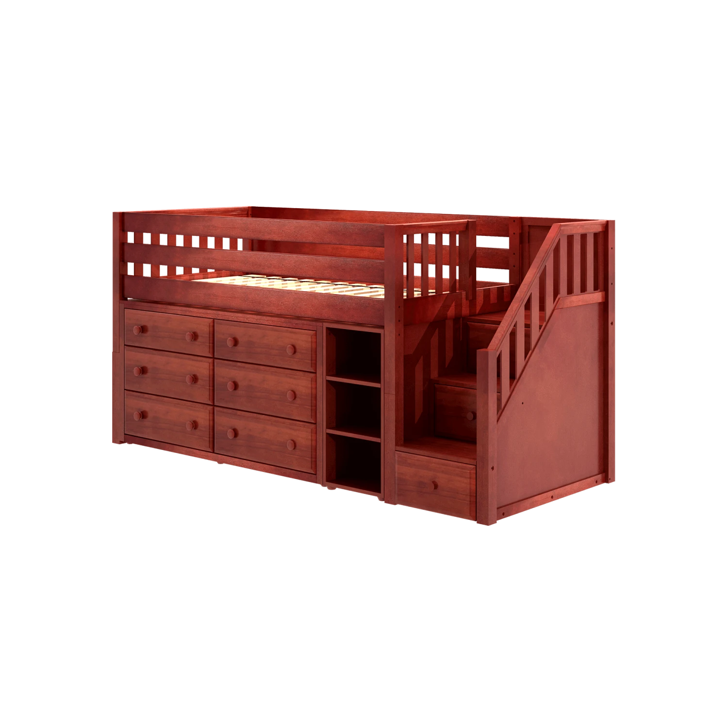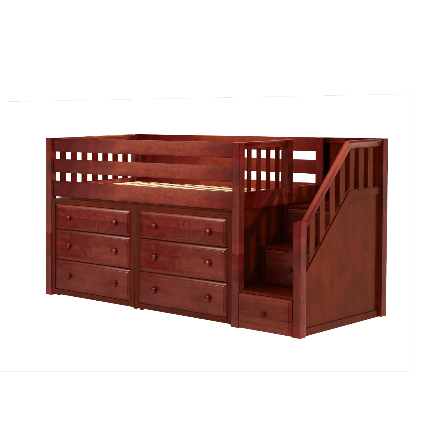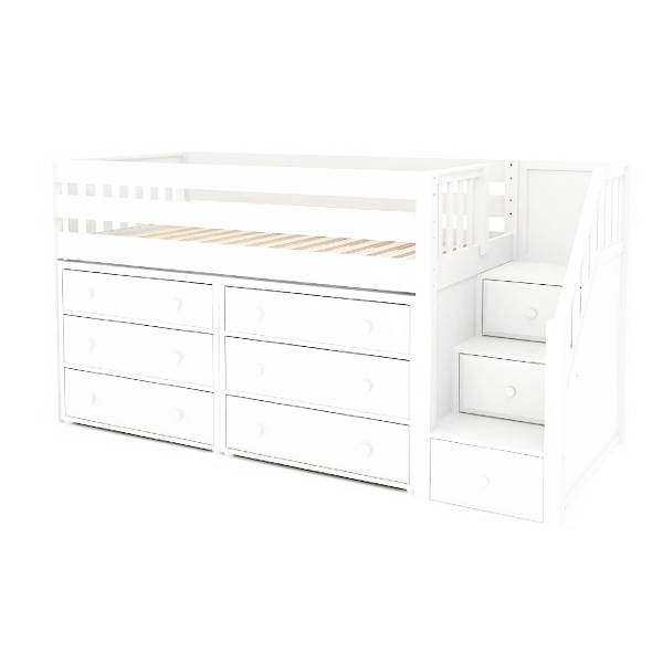 Maxtrix Twin Low Loft Bed With Stairs + Storage