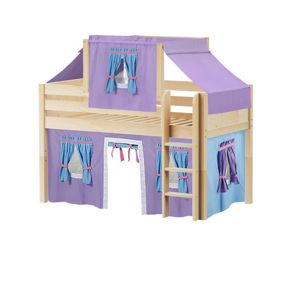 Maxtrix Twin Low Loft Bed With Straight Ladder, Curtain + Top Tent