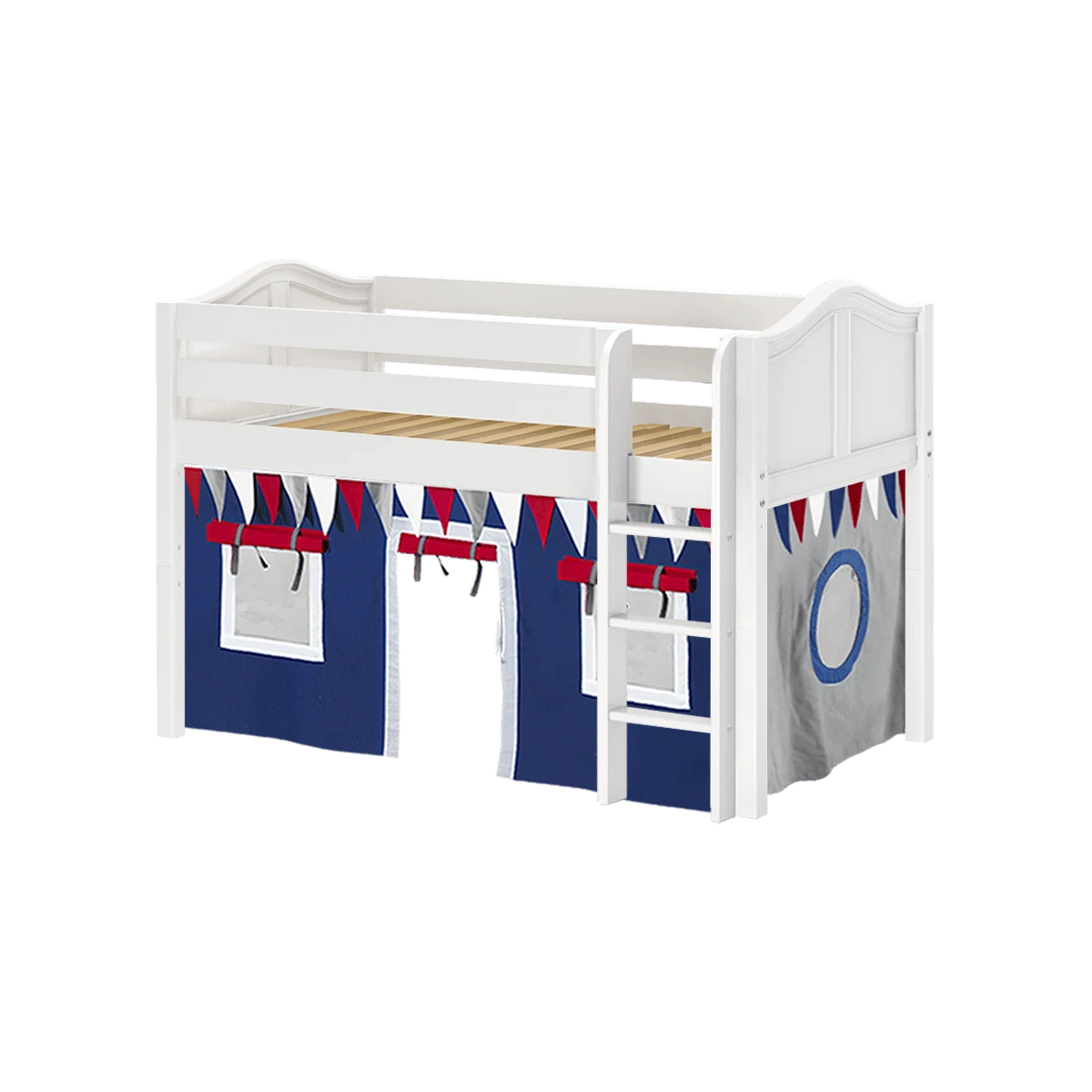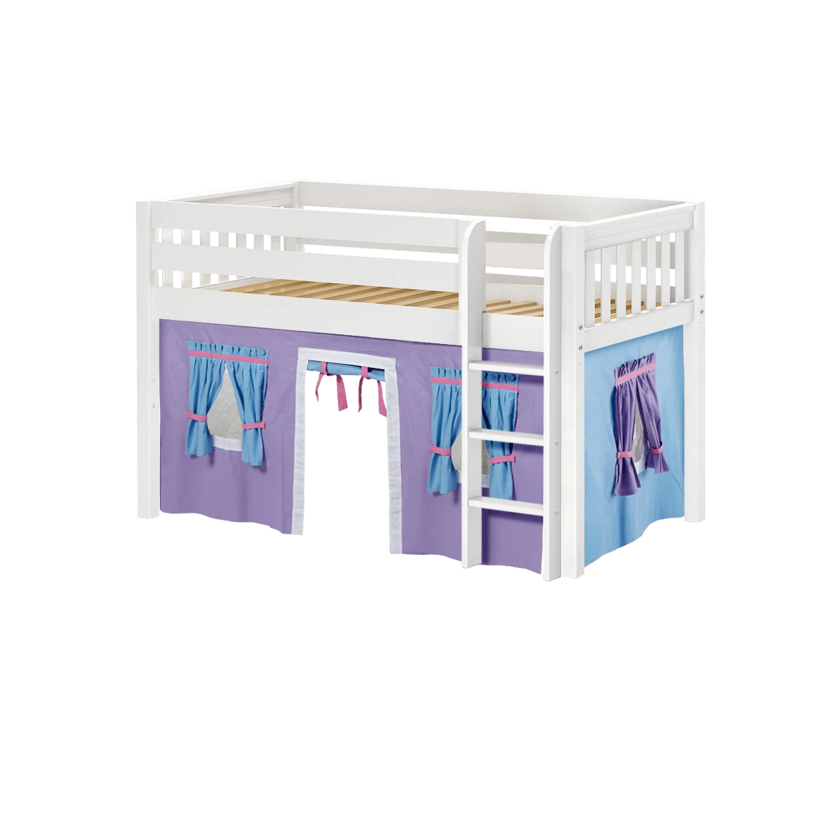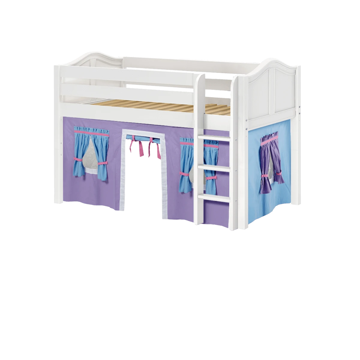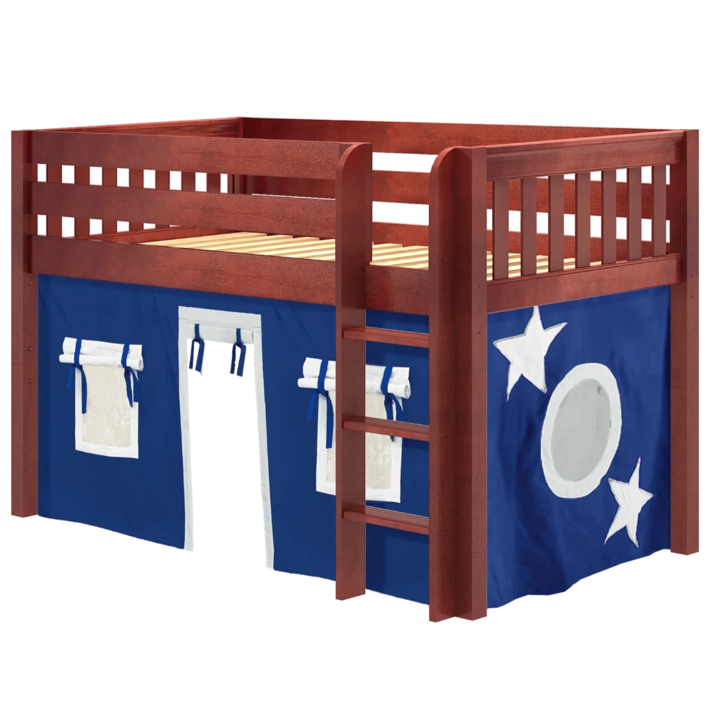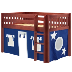 Inspire your child’s imagination with a playhouse loft bed! Only 50.75″ tall, our best-selling twin low loft with colorful curtains is the perfect intro to a raised bed. Space for sleep, storage and play all one place makes this just the right combination of fun and function.