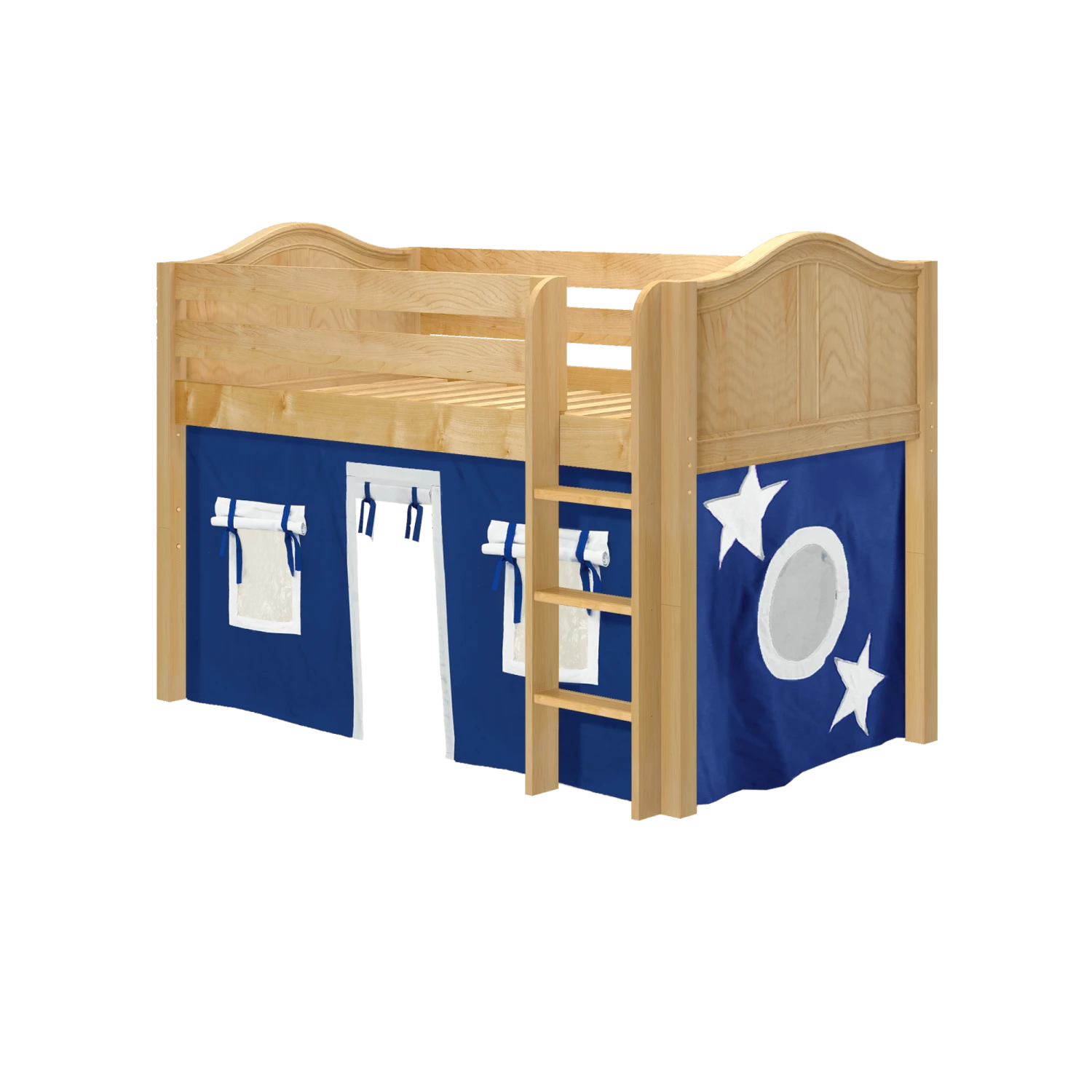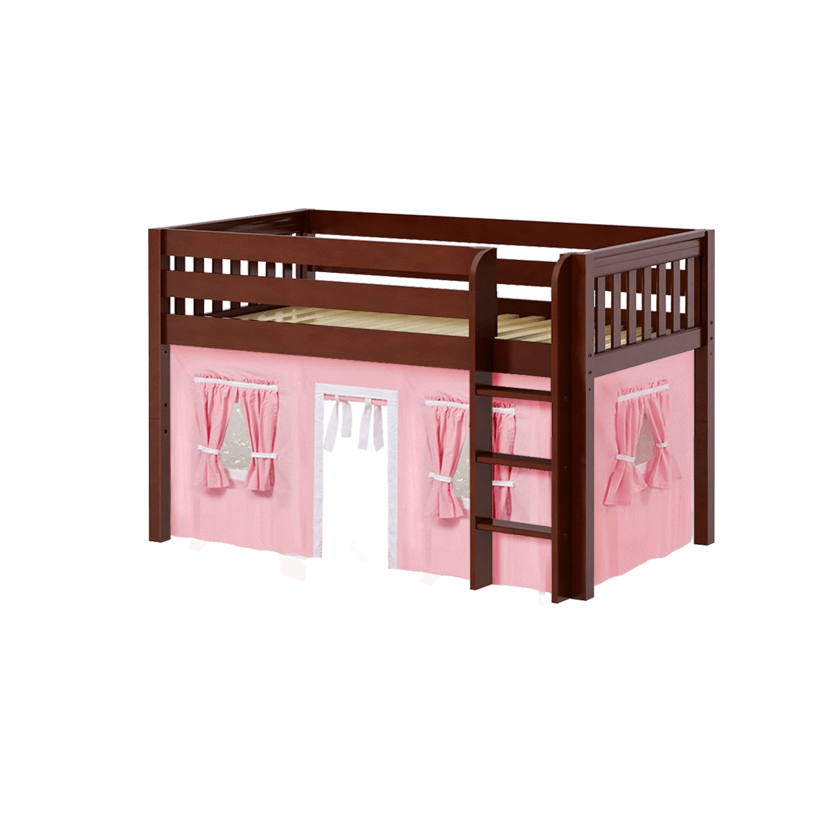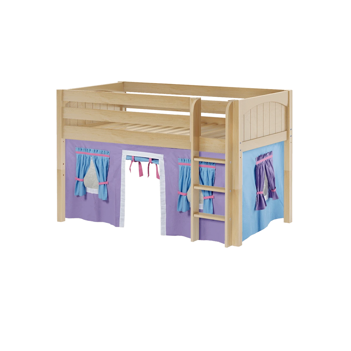 Inspire your child’s imagination with a playhouse loft bed! Only 50.75″ tall, our best-selling twin low loft with colorful curtains is the perfect intro to a raised bed. Space for sleep, storage and play all one place makes this just the right combination of fun and function.