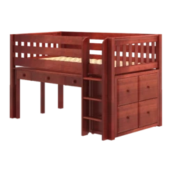 Maxtrix Twin Low Loft Bed With Straight Ladder, Storage + Long Desk
