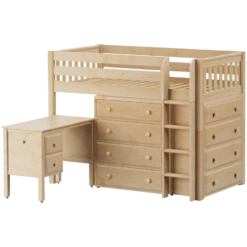 Our classic mid loft bed with straight ladder becomes the ultimate storage + study cube! Create your ideal combo of matching case goods, all designed to fit perfectly. Desk pulls out easily at homework time then slides back underneath. Each piece is freestanding so you can also use separately.