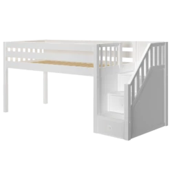 Staircase makes it easy for kids to climb up top and comfortable for parents as well – helpful at story time or when changing sheets. Each step has a deep drawer, providing built in storage to help keep your child’s room tidy.