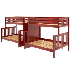 This Quadruple Bunk is two Twin XL over Full XL Bunk Beds connected by a staircase in the middle. Designed as a space-saving way to sleep four, it’s the perfect solution for a shared bedroom or vacation home. Added bonus, stairs double as drawers for built in storage!