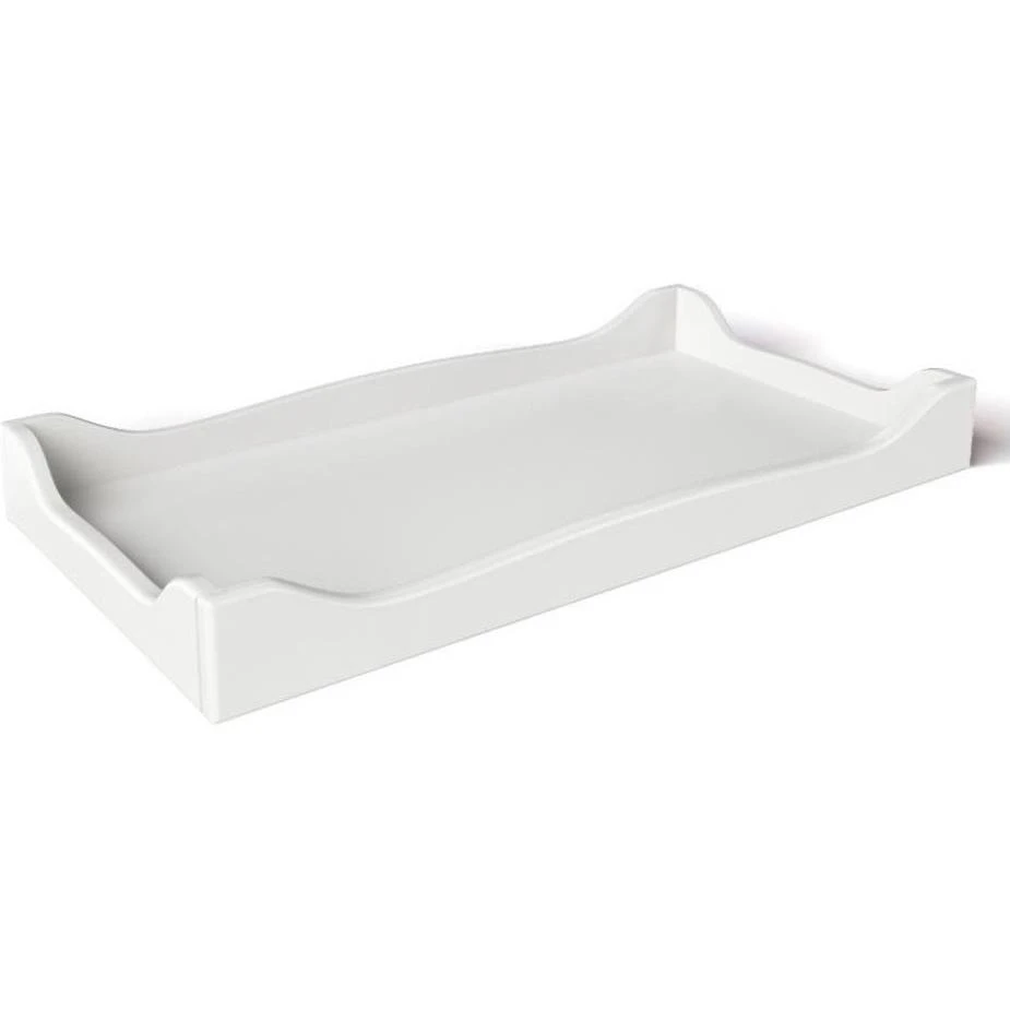 The changing tray is designed to maximize changing station safety. The scalloped edges prevent the pad (not included) from slipping and protect the dresser surface from spills and scratches. The tray can be secured from the back of dresser with two metal brackets.