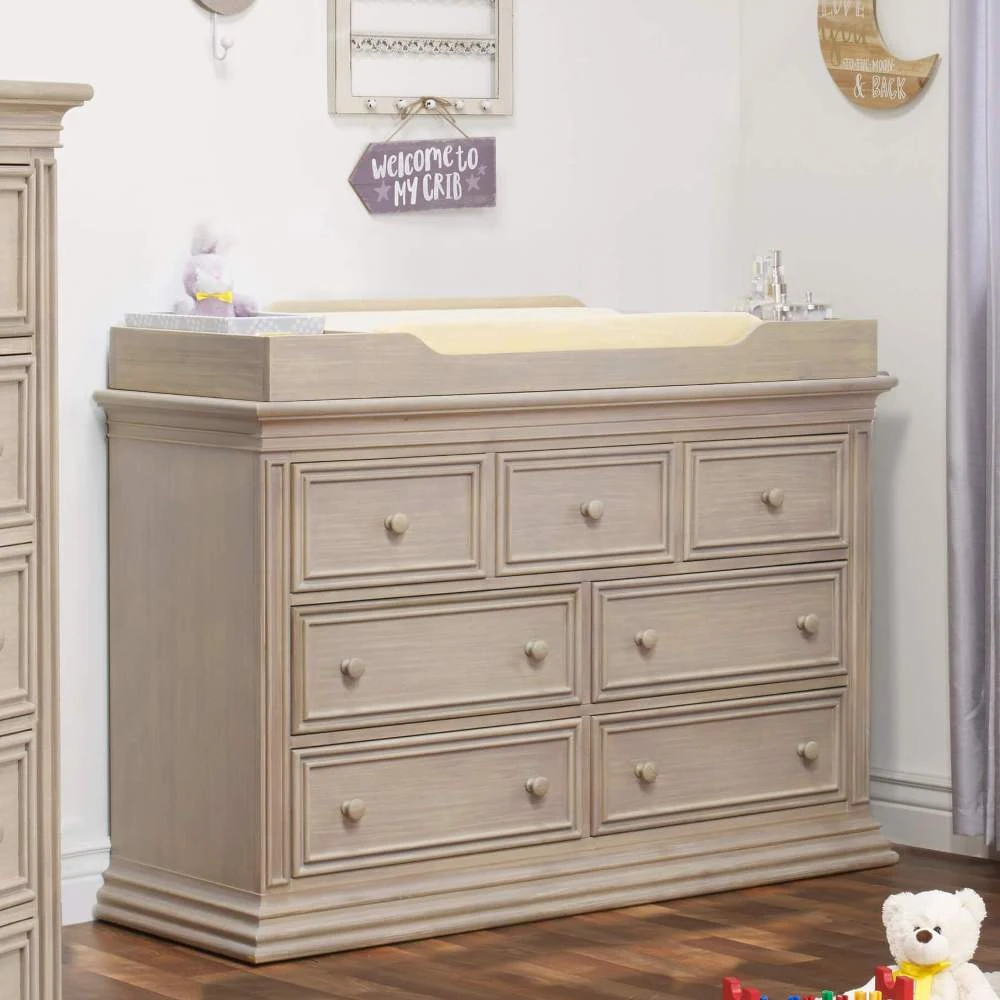 The Sorelle Topper provides a comfortable place to change your baby, and features 3 compartments to keep your essentials within reach. Keep your diapers, wipes, and lotions in one convenient place while changing your baby in the versatile Sorelle Topper. Designed for use with the Finley, Monterey, Montgomery, Providence & Verona Double Dressers (sold separately).